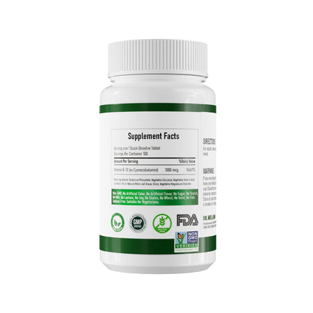 Vitamin B-12, also known as Cyanocobalamin, is primarily obtained from animal sources but is not found in vegetables in any significant amount - making these vegetarian-friendly tablets a real find! This is essential vitamin plays a role in many important health areas including aiding in the conversion of food into cellular energy and nervous system health.*