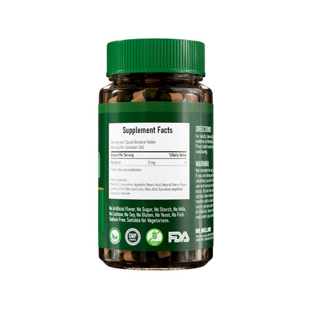 Melatonin helps promote a tranquil sleep so you can awaken refreshed and revitalizied.* Quick Dissolve Melatonin is a terrific choice if you experience occasional sleeplessness or jet lag, or if you want to improve your quality of rest.* Melatonin helps you fall asleep faster and stay asleep longer.* Just place the quick dissolve tablet under your tongue for 30 seconds before swallowing. You'll enjoy the bust of great natural cherry flavor and the benefits of Melatonin!*