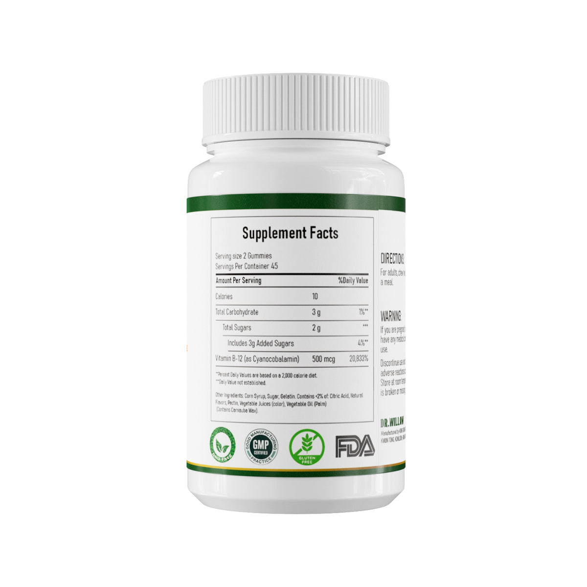 Take B-12 Gummies to provide nourishment for the occasional stress of daily living!* B12 Gummies support energy metabolism by aiding in the conversion of food into energy.* Containing 500 mcg of B-12 per serving, these delicious raspberry, mixed berry, and orange flavored gummies are non-GMO and free of artificial flavor. Just chew two delicious gummies daily and your body/taste buds will thank you!